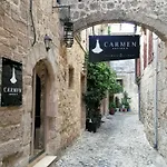 Az Elli-part körülbelül 20 perc sétára, az Apolló temploma pedig egy 25 perces sétára helyezkedik el a hoteltől. A Nagymesteri palota továbbá csupán 500 méter távolságra van. A Medieval City mindössze nagyon közel található a Carmen Art. A szállás mindössze egy 10 perces sétára van a San Francesco buszmegállótól.